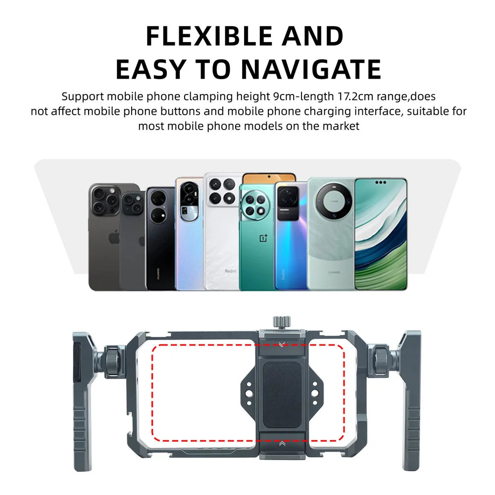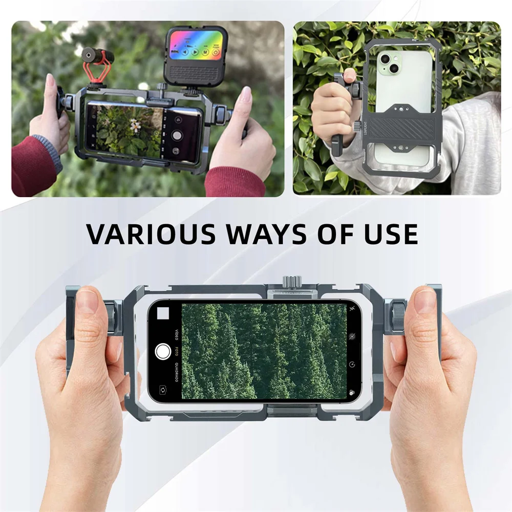 Conquer risky shots with our all-metal Mobile Phone Universal Rig Cage! Featuring a dual handle expansion frame and stable handheld design, this phone stabilizer tripod mount is perfect for adventurous photographers. Capture professional quality videos with ease and take your photography skills to the next level!