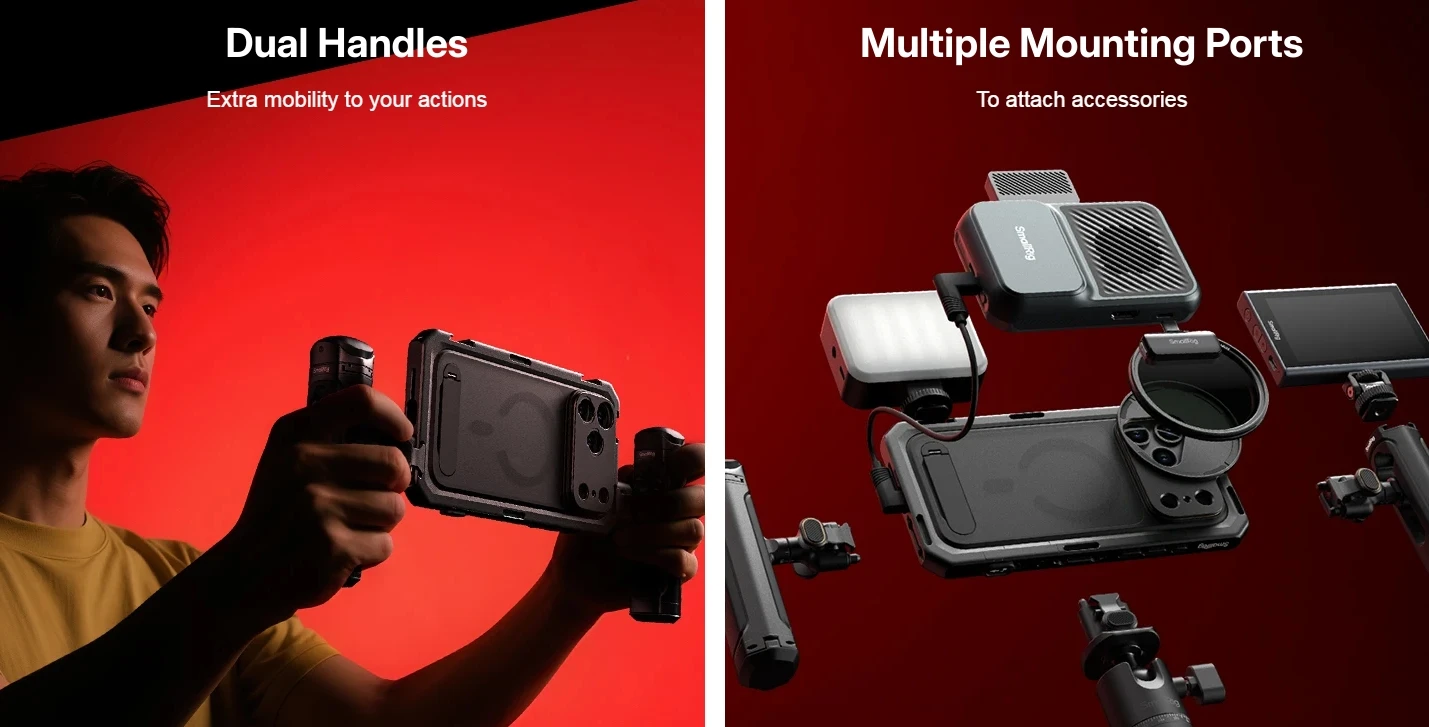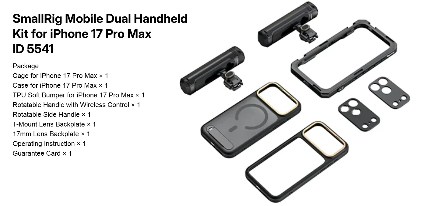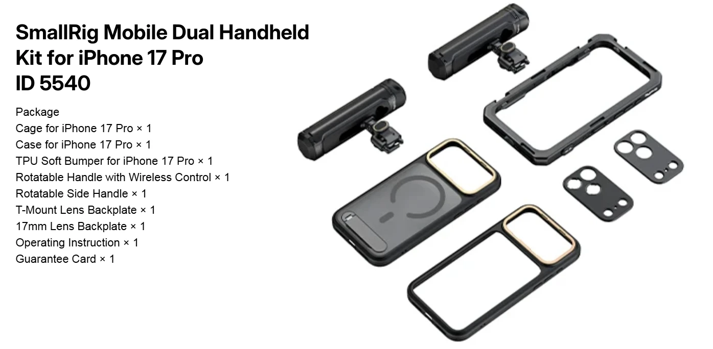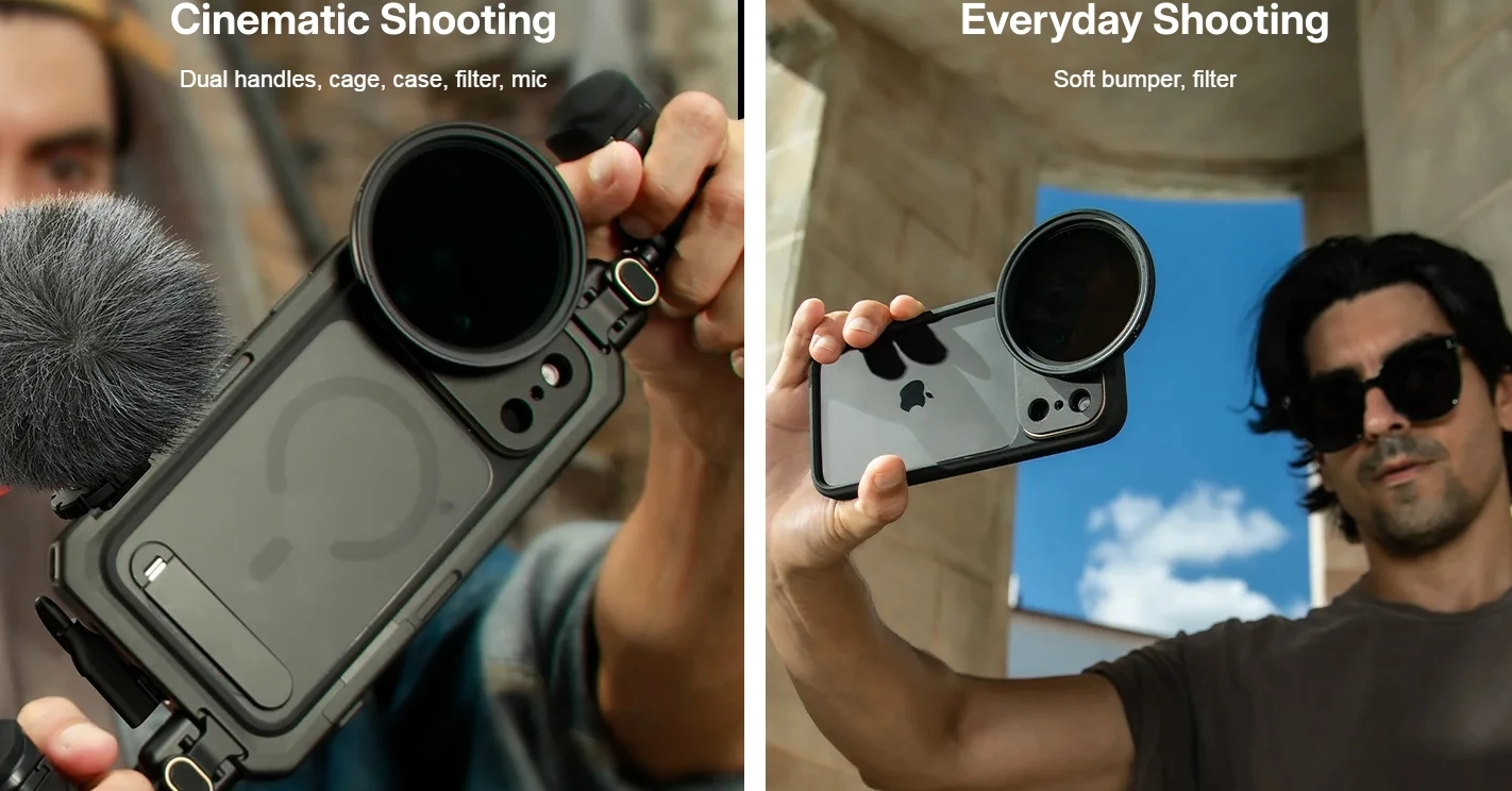 Dual Handheld Phone Cage Kit Full Cover Back Case for Iphone 17 Pro / 17 Pro Max Quick Release Video Rig Stabilizer