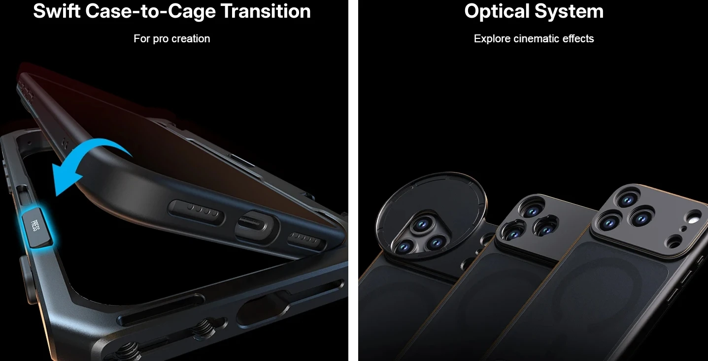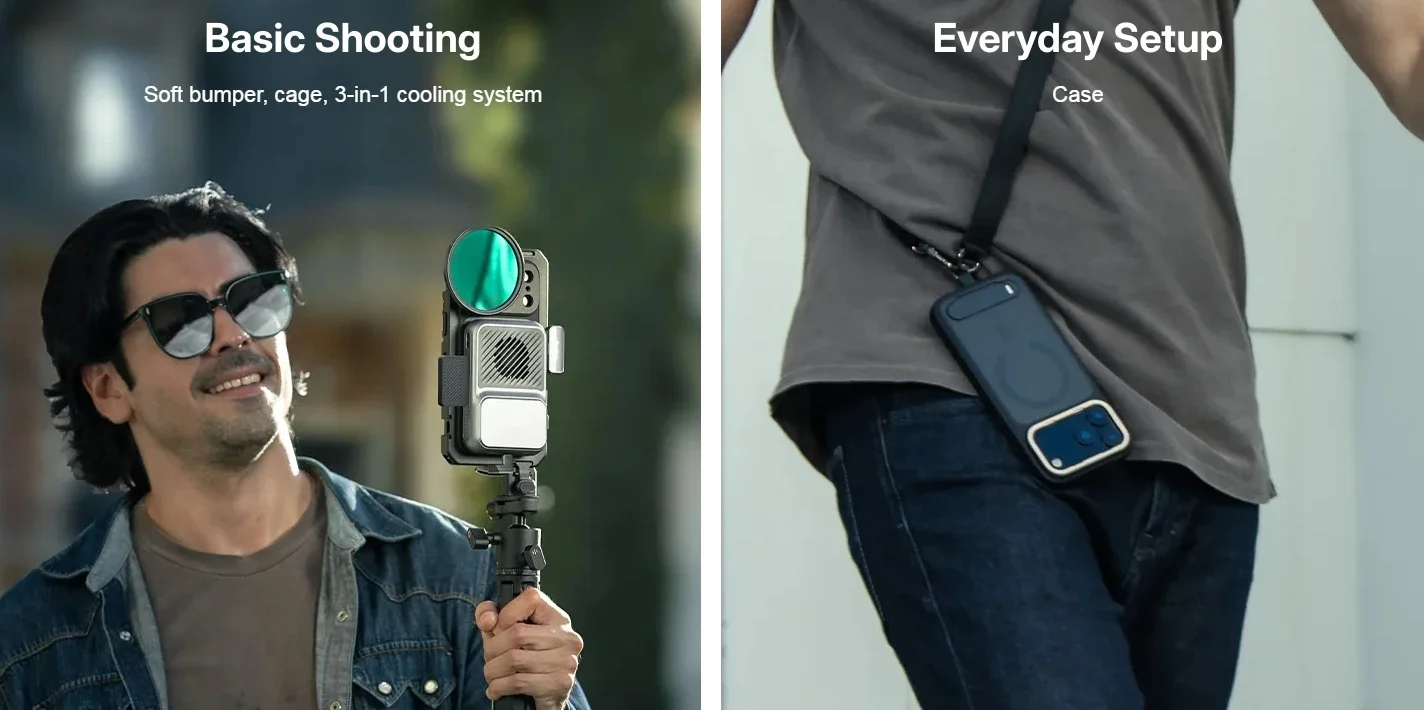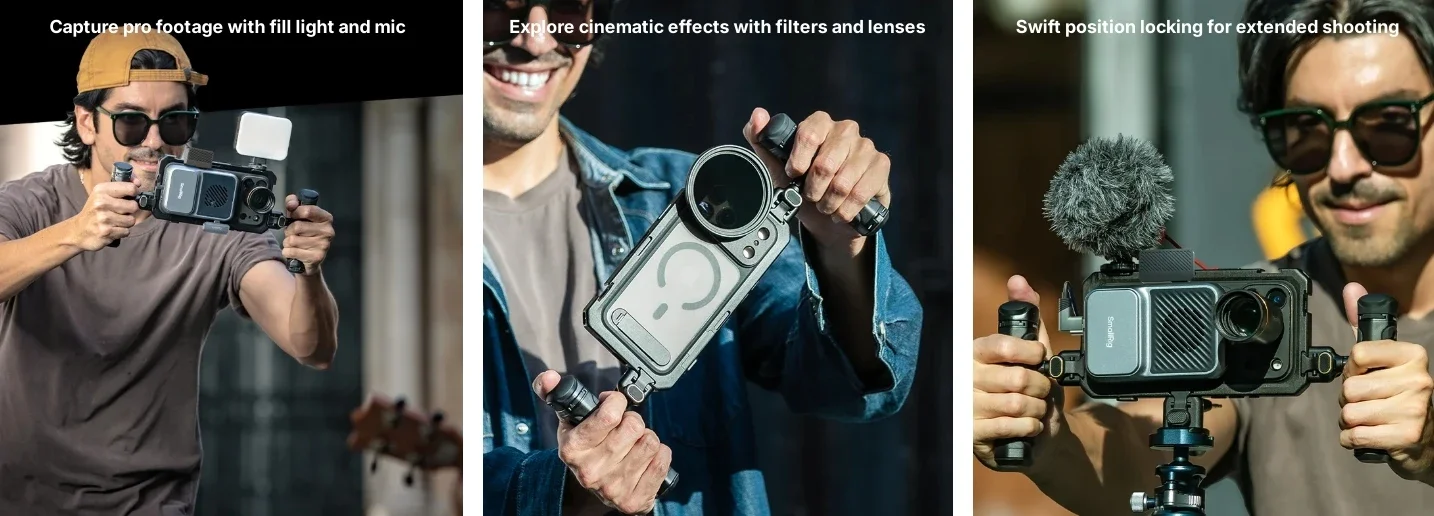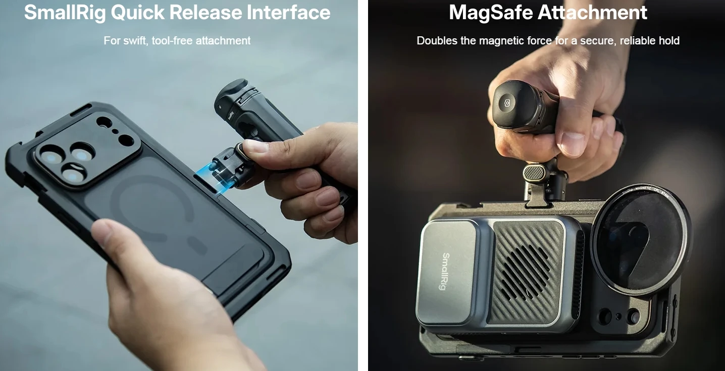 Dual Handheld Phone Cage Kit Full Cover Back Case for Iphone 17 Pro / 17 Pro Max Quick Release Video Rig Stabilizer