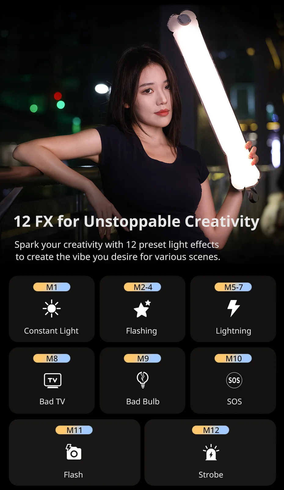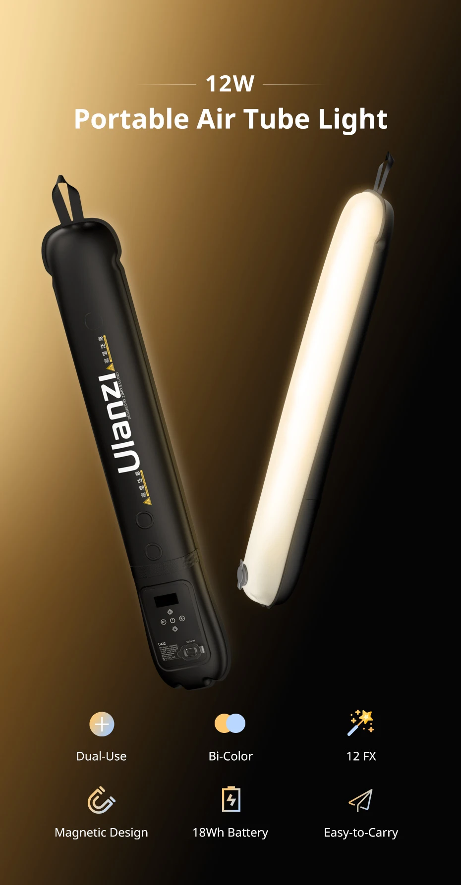 UA12 Air Tube Light Bi-Color 12W Portable for Portrait Photograph Livestreaming 2700K-6500K CCT TPU Tube Light Stick