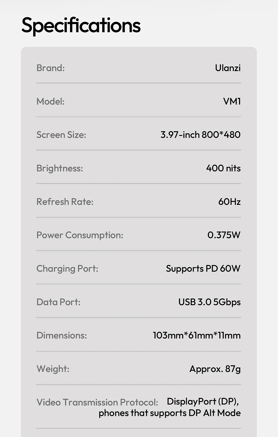 VM1 Vlog Selfie Monitor Screen for Iphone 17 16 15 Selfie Monitor Screen with Magnetic Ring for Smartphones Android