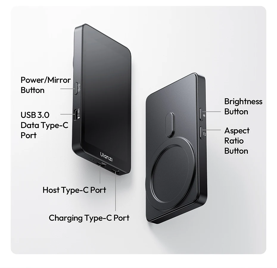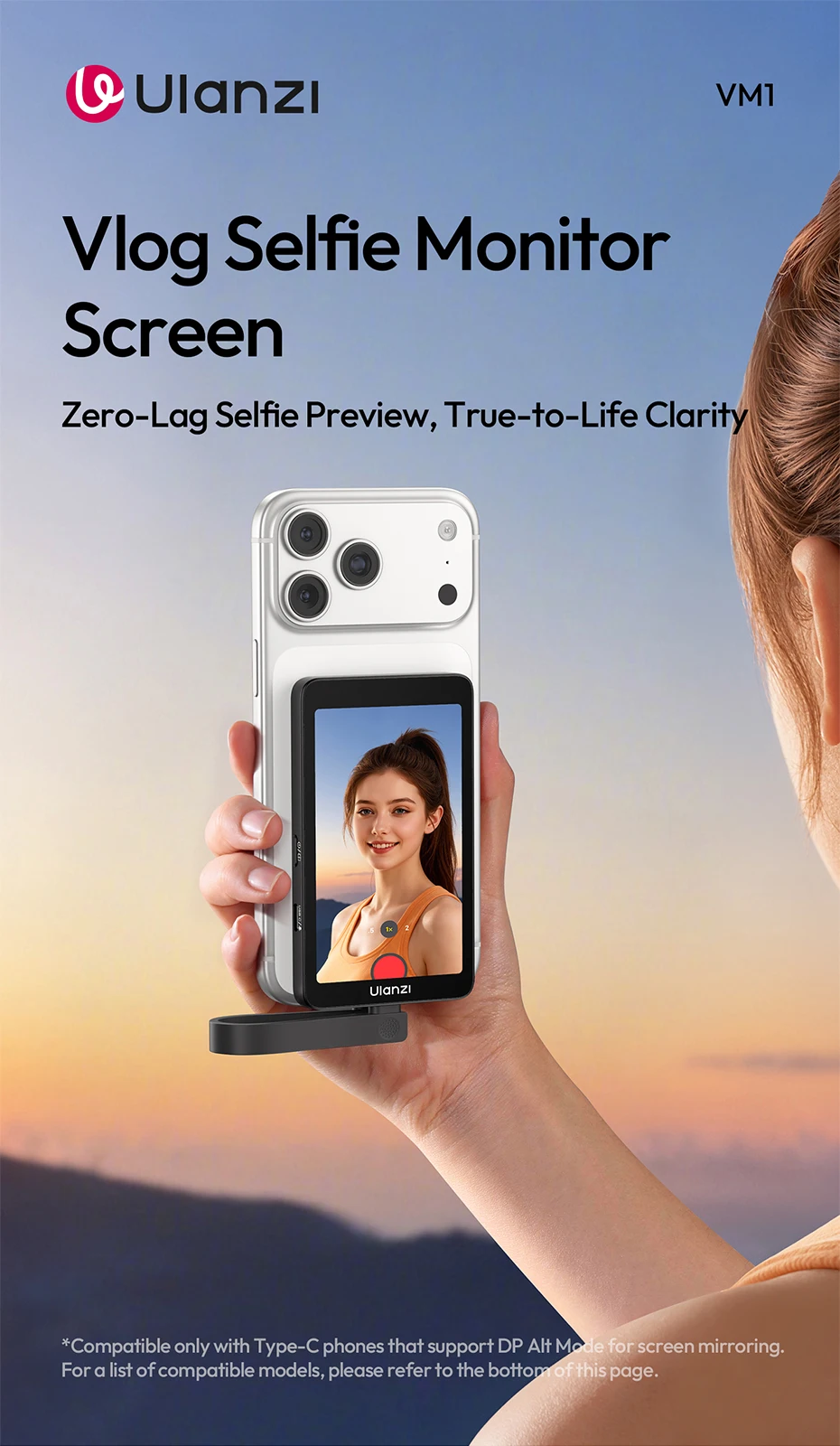 Ulanzi VM1 Vlog Selfie Monitor Screen for iPhone 17 16 15 Selfie Monitor Screen with Magnetic Ring for Smartphones Android for Vlog Video